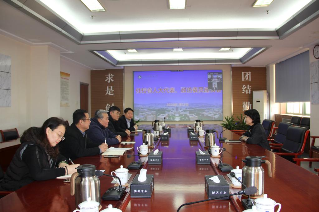 1月23日,学校召开住校省人大代表、政协委员座谈会,通报有关工作情况,听取代表委员意见建议。校党委副书记郭益灵出席会议并讲话。